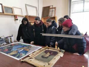 У Музеї мистецтв Прикарпаття студенти ознайомилися з особливостями музейної діяльності розповіла Наталія Орестівна Доскалюк. У реставраційній майстерні фондів музею студенти мали змогу поспілкуватися з реставраторкою Юлією Карпенко, яка поділилася професійними секретами та розкрила специфіку реставраційних процесів, що поєднують наукову точність і художню чутливість.