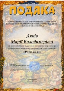 Участь Хмелівської Вікторії у обласному творчому онлайн-конкурсі “Роби як я!”