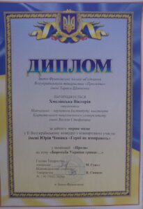 Участь студентів у ІІ Всеукраїнському конкурсі з міжнародною участю імені Юрія Чопика “Герої не вмирають”